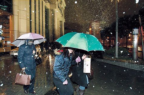 If there was any doubt about its novelty, this was dispelled when the 38th-floor Shanghai Daily newsroom emptied about 10pm as staff rushed to the lifts and outside to check out the falling flakes.