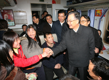 Premier visits stranded passengers in Guangzhou(Xinhua)