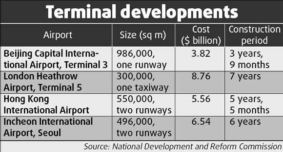 The new third terminal has been billed as the largest and most advanced in the country, with the 27 billion yuan ($3.75 billion) investment expected to be recovered in 12 years.