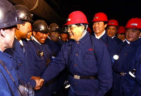 After chairing two key meetings in as many days in Beijing, President Hu Jintao took an inspection tour on Thursday to coal fields in Datong of Shanxi Province and Qinhuangdao Port in Hebei province, through which much of Shanxi's coal is shipped. Hu entered a coal mine more than 400 meters underground, taking an elevator down to meet miners of the Datangtashan coal mine co-op in Datong who had worked overtime in temperatures of minus 20 degrees Celsius to increase supply. "Disaster-hit areas need coal and the power plants need coal," Hu told administrators and workers of the mine, saying that coal supply had been a crucial part in fighting the snow disaster. At the side of a facility that transfers coal to vessels in Qinhuangdao Port, Hu told dockworkers to maintain all equipment in good condition and improve the efficiency of coal transportation to vessels. Power in much of central and southern China has been disrupted by the winter weather and its ensuing effects on coal transport. The snow, the heaviest in decades in many places, has been falling in east, central and south China for more than a fortnight. It has caused deaths, structural collapses, blackouts, accidents, transport problems and livestock and crop destruction. Premier Wen Jiabao was also on the road for much of the past three days. Wen flew out of Beijing on Monday night to Hunan Province but had to land at Tianhe Airport in neighboring Hubei Province because of the bad weather. He completed his journey by train and arrived in Changsha City, the provincial capital, on Tuesday morning. In Changsha railway station, Wen offered early Spring Festival wishes to stranded passengers. "I am deeply apologetic that you are stranded in the railway station and not able to go home earlier," Wen told the passengers through a megaphone. "We are now doing our best to fix things up and you will all be home for the Spring Festival." On Wednesday morning, he arrived in the southern city of Guangzhou, where he reassured stranded rail passengers that the government would try its best to make sure they got home for Lunar New Year family reunions. "The Premier was in Hubei the day before yesterday and in Hunan yesterday. I do not expect him to come to Guangzhou today despite the rain. I feel warmth in my heart," said a passenger. Chinese netizens also filled online bulletin boards with heartwarming words to express how moved they were by the leaders' visits. "After watching the Premier's visits on TV, I feel greatly encouraged," said a netizen whose IP address was from Hebei Province, "I firmly believe that there is no reason we can not fight back against the disaster." Daniel Cotterall of New Zealand, who is living in Beijing, said that he saw on television the news that Wen went to train stations, telling people not to panic. "The Premier's visit among the public was great and typical of Premier Wen's style. He was interested in people's real problems, especially those of farmers and migrant workers," Cotterall said. According to the latest update released by the National Development and Reform Commission (NDRC) on Thursday evening, traffic jams in disaster striken areas had been eased as the army were called in to help clear the ice. Power supply has been resumed in most of the southern areas except for Hunan, Jiangxi and Guizhou Provinces. Coal supply for power generation has been increased in most needed areas. Another update from the Ministry of Public Security said that all the airports in provincial capitals and other major airports have resumed flights.