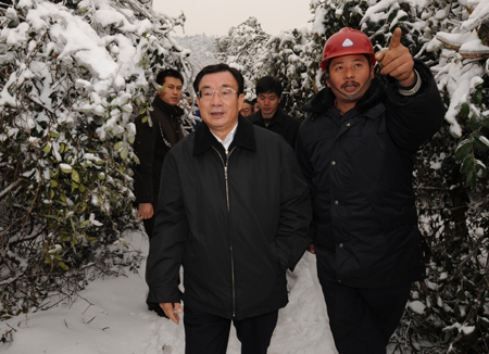 "The disaster in Jiangxi is still developing. We are facing a tough task," said He, a member of the Standing Committee of the Communist Party of China (CPC) Central Committee's Political Bureau. "It is our most urgent task to fight the disaster and carry out relief work." He, the eighth top leader of the CPC to venture into the field to join the relief efforts, has been in Jiangxi since Wednesday. He has been entrusted by Chinese President Hu Jintao to direct disaster relief work and condole local residents. "Party and government leaders of all levels shall be on the spot of the most-affected regions," He said. "They shall put the people's needs first." In the past two weeks, unusual freezing weather, icy rain and heavy snow have hit most of Jiangxi, affecting traffic, power supply and people's daily lives. A new round of heavy snow has fallen in northern Jiangxi since Thursday evening. By Saturday morning, 66 provincial counties were blanketed by at least two centimeters of snow. The snow was thicker than 10 cm in 21 of the counties. He visited the airport and the Nanchang railway station in the provincial capital upon arrival and inquired into the operation of flights and trains. Noticing a newborn baby carried by his mother waiting to board a train, He talked with the woman, Tan Xiaohui, and helped her with the child's woolen cap. He told Tan to take care of the child and herself and the other passengers to keep warm while wishing them a safe journey home. His second stop was the bridge across the Yangtze River in Jiujiang, a major juncture of a trunk road. |