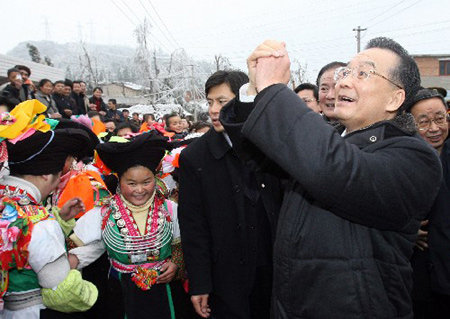 Top Leaders Offering Helping hands Senior leaders, including President Hu Jintao and Premier Wen Jiabao, went deep into coal pits or visited railway stations to encourage workers to produce more coal for power generation, to sympathize with stranded passengers and urge local authorities to prevent price hikes. At an airport in southern Guangxi Zhuang Autonomous Region on Tuesday, President Hu Jintao was seen to remove his coat and join a squad of soldiers to load relief supplies onto a helicopter. Wen made three such trips over the past nine days, setting foot in such disaster areas as central Hunan, southern Guangdong, southwestern Guizhou and eastern Jiangxi. It was the fifth Lunar New Year's Eve in a row on which Wen didn't go his own home but spent the holiday with the public. "Senior leaders visiting disaster areas are 'a natural response' by the government that shows care for the people," said Michael Chui, a Hong Kong-born Chinese living in Beijing. "It's an important move that shows the government is 'aware of the problem' and thinks about the people." Netizen "Su by Lake" commented online: "We are looking forward to a brand new and fruitful year for China as the country is embracing such exciting events as the Olympic Games. Since we defeated the snow disaster, no hardship could frighten us."