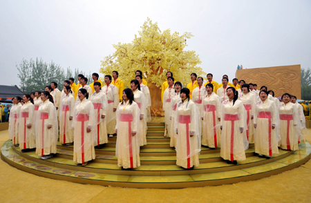 The worshipping ceremony for the Yellow Emperor is held in Xinzheng, Central China's Henan Province, April 8, 2008. [Xinhua]