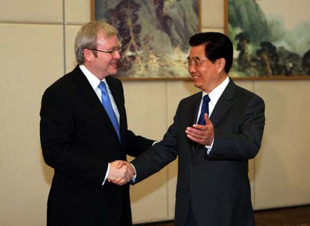 He made the remarks while meeting with visiting Australian Prime Minister Kevin Rudd in Sanya, a scenic city in south China'sHainan Province.