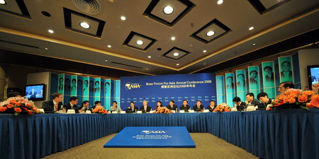 Young Leaders Roundtable meeting opens in Boao Forum for Asia (BFA) Annual Conference 2008 in Boao, South China's Hainan Province April 11, 2008. The BFA Annual Conference 2008 opened on Saturday, focusing on the building of a Green Asia. [Xinhua]