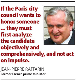 "If the Paris city council wants to honor someone they consider to be a hero, they must first analyze the candidate objectively and comprehensively, and not act on impulse."