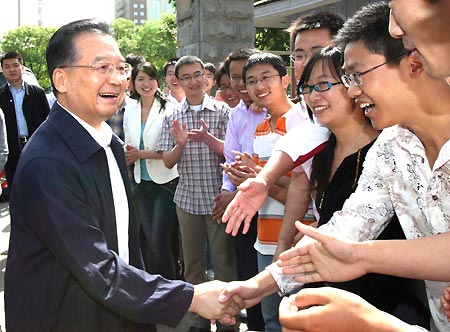 A law student should develop a high degree of sense of responsibility for the country, the society and the people. He or she should be fair-minded and above all, love this country, said Wen during his visit to the China University of Political Science and Law on China's Youth Day. During his trip, Wen first went to the first floor of the university's library, which boasts the country's largest collection of modern law books. Here Wen met senior experts and professors and talked with them about the law history.