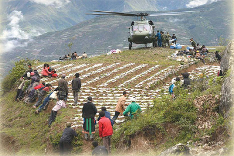 Li, deputy commander of the Aviation Regiment of the Chengdu Military Area Command, then made a soft landing and waited as his crew unloaded supplies of food and medicine. Unable to approach the aircraft because of the wind from the blades, the grateful crowds of people knelt down, put their hands together and cried: "Thank you, soldiers! Finally, we have hope." Although deeply moved, Li managed to hold back his tears and took off once the unloading was completed. "At that moment, there was no time for tears," he said, recalling the first flight into Wenchuan after the earthquake. "Every minute costs a life."