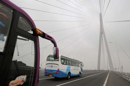 The bridge, linking the two prosperous cities of Nantong and Suzhou, runs 32.4 kilometers, with 8,146 meters spanning the Yangtze, China's longest waterway. It has three lanes each way. You Qingzhong, provincial director of transportation, said the bridge, serving as a major land link between Jiangsu and Shanghai, was expected to ease navigation problems caused by ferries in the Yangtze estuary and to promote economic growth in the Yangtze River Delta. The bridge, 108 kilometers upstream from the Yangtze's mouth, joins the national highway network on the both banks. "The journey between Shanghai and Nantong now only takes one hour, but previously it took almost four hours, including the ferry trip," said You. "With the bridge, it takes just seven minutes to drive across the Yangtze." The bridge has undergone a month-long trail, which saw a daily flow of 20,000 to 30,000 vehicles, before Monday's formal opening ceremony . "The bridge's quality and its management both have stood the test and we are confident of its future operation," he said. Built at a cost of 7.89 billion yuan (US$1.15 billion), it is the most complicated bridge project in China's history, setting several technical records. It has the world's longest span of 1,088 meters, usurping the previous record holder, the Tatara Bridge in Japan, which has a main span of 890 meters. "The main navigational opening is 62 meters in height and 891 meters wide, which allows the passage of huge vessels with a cargo capacity up to 50,000 tonnes," said Wu Shouchang, chief engineer of the construction headquarters. It also used the longest bridge cable of 577 meters, 100 meters longer than Tatara's record. Its steel and concrete towers, the tallest bridge towers in the world, stand at 300.4 meters. "The bridge is a good demonstration of China's scientific achievements in bridge construction over the past years," said Wu. |