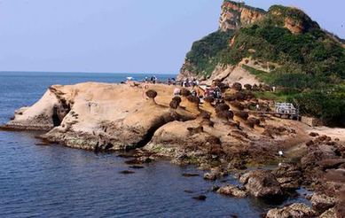 Visitors walk around in Yehliu Geo Park in Taipei county, Taiwan July 5, 2008. A group of 760 Chinese mainland tourists started a historic journey to Taiwan last Friday and was warmly welcomed at every stop around the island. [Xinhua]