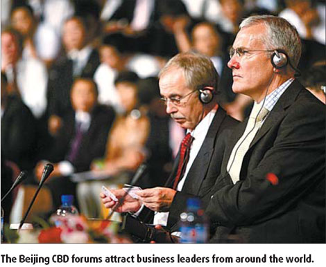 The establishment of the Beijing CBD Chamber of Finance, the Beijing CBD Chamber of Media Industry and Beijing CBD Association of Property Management & Real Estate Development has facilitated communication and cooperation between the government and enterprises. The Beijing CBD International Business Festival and Beijing CBD International Forum have put the Beijing CBD on the map worldwide. The Beijing CBD has unprecedented opportunities for further development, in line with promises made when China was admitted into the World Trade Organization (WTO) that the country would gradually open more sectors in its financial sector. As the host city of the 2008 Olympic Games, Beijing has greatly improved its traffic system and communications network, and is now restructuring its economy to put greater emphasis on the financial, media and business services industries. The future is promising. By 2010, as the industrial structure of the Beijing CBD improves, the financial, media and consulting industries will make greater contributions to China's economic development. The Beijing CBD will be a better place to work and live in and its influence in the business world will spread further. ![]()
