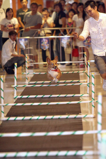 This handout photo taken on July 14, 2008 shows dogs racing down a running track at the "Olympets" in Hong Kong. As athletes from around the world sweat it out at the 2008 Beijing Olympic Games, Hong Kong's pampered pets are being put though their paces in their own version of the Olympic Games. [Agencies]