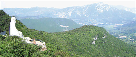 The Shaolin Tourism Hotel offers one of the more comfortable options in Wang Zhi Gou, with its refurbished annexes, glass-walled attached toilets and second-floor dining rooms that look out to the hills. Hotel employee Yuan Yanan says there are occasional groups of foreign tourists who stay for up to a year as they take kungfu lessons down the slope. Still, the town of Dengfeng, about 20 minutes by minibus from Shaolin Temple, ends up as the choice of lodging for most first-time visitors. After an hour-long bus ride from the Zhengzhou train station, the attractions of this sleepy town at the foot of Songshan are worth a brief stop. Slurp up a hearty bowl of Henan's huimian noodles - proof of why the province is the country's breadbasket - with raw garlic on the side in roadside stalls and fuel up for a visit to Zhongyue Temple, a Qing Dynasty complex modeled after Beijing's Forbidden City that was built to worship the god of Songshan. Unlike the welcome you receive on your mobile, Dengfeng residents can be typically nonchalant about the area's fame. "We're all aware of the heritage and history here, being in central China," says Zheng Nanyue, who runs a huimian stall in western Dengfeng. "But locals don't brag about the attractions, because it becomes obvious once you're at the center of it all." |