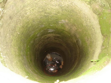 A grandmother fell into a deep well and was entangled by a water snake in a village in Xuchang city in central China's Henan Province on Wednesday, September 10, 2008. [dahe.cn]