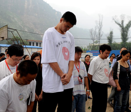 Updated: 2008-09-16 00:06 CHENGDU -- NBA star Yao Ming's two-day visit of the earthquake-hit Sichuan Province ended on Monday.