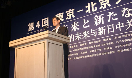 Japanese Foreign Minister Masahiko Komura addresses the opening session of the 4th Beijing-Tokyo Forum in Tokyo September 16, 2008. [chinadaily.com.cn]