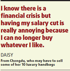 Updated: 2008-12-10 07:57 Zhang Yu, owner of a consignment store for luxury goods, hopes business stays as strong as it has been in the past two months amid the global economic downturn.