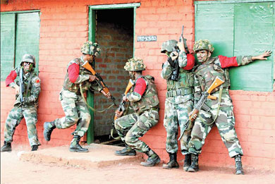 It was the third and final stage of the joint anti-terror military training between the two sides, which ran from last Saturday to Friday. The scenario for Friday's drill was that a group of "international terrorists" secretly entered two villages in the forest of northwestern Belgaum. The anti-terror soldiers had to "catch or kill" them without hurting innocent villagers. The troops first searched one village, "shooting to death" one "terrorist" and arresting two others. After interrogation of the two "terrorists", the company was told six to eight others, along with their zonal commander, were hiding in two buildings in another village. The commanding officer immediately sent two MI-8 helicopters with a quick reaction team to the village, and soldiers abseiled from the aircraft. After searching and fighting, they "killed" six "hard-core terrorists including the zonal commander" and recovered a large quantity of arms and ammunition. The entire drill was completed at 10 am local time, an hour ahead of schedule. Lieutenant General Ma Xiaotian, head of the Chinese military observer delegation, said the drill was "successful and effective". Anti-terrorism experts spoke highly of the drills, saying they will help nip problems in the bud and improve emergency response capacity. "Countries should also improve intelligence sharing, which is key to fighting terrorism," Li Wei, director of the anti-terrorism research center of China Institute of Contemporary International Relations, said. China Daily-Xinhua |