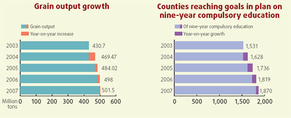 So goes the ideal world described by ancient Chinese philosopher Confucius in his Ideal of a Commonwealth State. Now, 2,000 years later, the premier of the world's most populous country has devoted almost half of his two-and-a-half hour work report on every sector mentioned in the classic tract, toward a shared goal of realizing such a people-first society. As part of a nine-chapter plan for the goal, the premier said in his report to the first session of the 11th NPC that: The government plans to earmark 6.8 billion yuan ($956.6 million) in its 2008 budget to build low-rent houses for the urban poor. The amount is 1.7 billion yuan, or 33 percent, more than last year, Wen said, urging local governments to also increase funding in the sector. Wen also called for more low-priced and small-scale houses for those in the middle-income bracket, as part of an integrated effort to solve housing problems caused by soaring property prices in a red-hot economy. Governments at all levels are required to provide steady and adequate food supply to the country's 1.3 billion population, in an effort to control inflation, especially rising food prices, and maintain social stability. "We will continue to implement the system of having provincial governors assume responsibility for the "rice bag" (grain supply) program and city mayors being responsible for the "vegetable basket" (non-staple food supply) program," Wen said. Stressing that the current price hikes and increasing inflationary pressures "are the biggest concern of the people", Wen urged governments at all levels to expand production, especially of basic necessities such as grain, vegetable oil and meat, as well as other commodities in short supply. China will stipulate or update more than 7,700 national standards for the safety of food, drugs and other consumer goods this year, as part of the efforts to ensure product quality and safety. Wen also pledged to increase punishments for companies that violate laws and regulations pertaining to product quality and safety, and to improve supervision and control systems in this regard. "We will raise the requirements for production permits and tighten market access for products related to people's health and safety ... and strictly control the quality of exports and imports," Wen told the 3,000 lawmakers. The government will work to create 10 million jobs this year and try to keep registered urban unemployment rate at about 4.5 percent. The targets came as China's urban unemployment rate in the past five years has been contained within 4.3 percent, government figures show. China will work to expand employment "by encouraging and training business start-ups, strengthening job training, encouraging people to find jobs on their own, and supporting the establishment of small enterprises", Wen said. Coping with the 150 million rural workers who have flocked to cities was identified as another challenge for the government. The premier also told the session that free, nine-year compulsory education will be extended to urban children from this autumn, and the central government will allocate 83.2 billion yuan to support healthcare reform. More than 276 billion yuan will be channeled to the social security system, 45.8 billion more than the previous year. Chen Lianqun, an NPC deputy, said the measures marked public welfare as a major area attracting funds from China's national treasury. "Thirty years of blistering economic growth, along with the reform and opening up, has laid a solid foundation in the central budget for the current government to address all the social ills, and I am pleased to see that it has continued to attach more attention in addressing social issues," Beijing resident Huang Wenqing said. ![]()