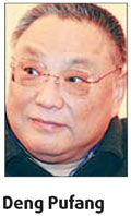 Deng Pufang - elder son of late leader Deng Xiaoping - yesterday became the first physically-challenged person to join the top leadership in the country when he was elected CPPCC vice-chairman. He has been paralyzed waist down since 1968 after jumping out of the window of a Peking University building after being tortured as the son of a "disgraced politician". After a short stay at a Beijing hospital, Deng was sent to a "home" for disabled soldiers in the suburbs to live with 10 other persons in a large room. There was no medical care and meals were mostly rough grain with pickled vegetables. The only two who could move around were an elderly man who was hard of hearing and an intellectually-challenged boy - they took care of the others. In her book, Deng Xiaoping and the 'cultural revolution', Deng Rong recounts how Pufang's roommates were sympathetic to her elder brother. "In his period of utmost difficulty, these friends gave him the most precious thing care and warmth." And Ping said Deng is paying back by "working hard despite poor health". Deng embarked on his path of providing welfare for the disabled in 1983; and after 25 years, the ups and downs of his life have forged his personality - calm and determined. "He belongs to the kind of people who always hide their own sorrows and try to cheer others up," said Ping. Equal rights for the disabled are the goal of Deng's work for he understands better than most how much disadvantaged people yearn to be treated equally. He established the China Disabled Persons' Federation and the China Disabled People's Performing Art troupe; launched the China National Disabled People's Games; had barrier-free facilities built across the country; and was instrumental in having thousands of special education schools opened. In 2003, he was awarded the United Nations Prize in the Field of Human Rights. (China Daily 03/14/2008 page1) |