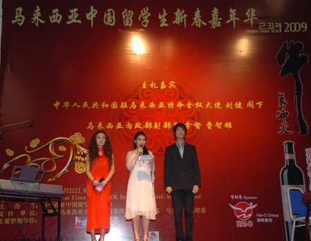Chinese students host a party to usher in the Spring Festival in Kuala Lumpur, the capital of Malaysia, January 22, 2009. The festive party was held by the China Student Federation Malaysia to celebrate the imminent Chinese Lunar New Year. [Xinhua]