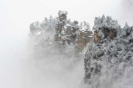 Picture taken on March 4, 2009 shows a view of the Tianzi Mountain in Zhangjiajie, a UNESCO heritage site in central China's Hunan Province. [Xinhua]