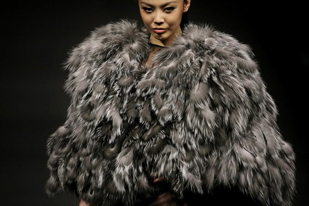 A model presents a creation of China's Tsinghua University of Academy of Arts and Design graduates at China Fashion Week in Beijing, March 25, 2009.[Agencies]