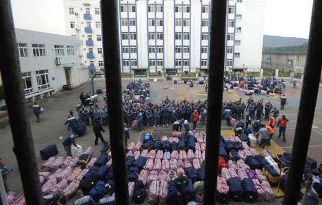US students learn how to write Chinese characters with brushes in Chengdu, Sichuan province. The students, from State University of New York, were attending a one-week exchange program at colleges in Sichuan in January 2010. Jiang Hongjing / Xinhua |