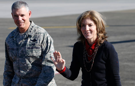 ![]() Chinese medics check the condition of a US soldier in a joint disaster-relief drill on Thursday at Bellows Air Force Station on the island of Oahu in Hawaii. [Photo by Yu Wei/China Daily] |