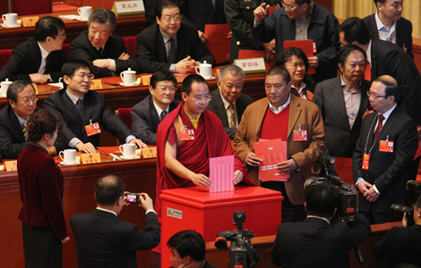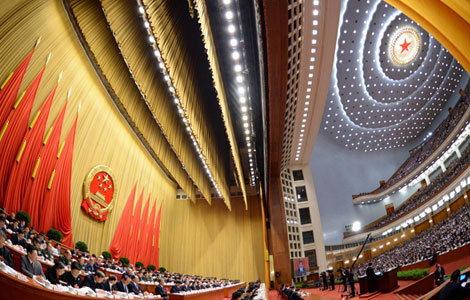 The third plenary meeting of the first session of the 12th National People's Congress (NPC) is held at the Great Hall of the People in Beijing, capital of China, March 10, 2013.