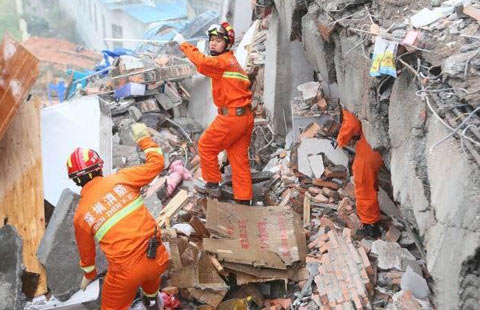 A tourist wearing a mask poses for a photo in front of Tian'anmen Gate tower in Beijing, Dec 20, 2015. Beijing was enveloped in eye-watering, throat-irritating smog as the second red alert of the month went into effect in the Chinese capital on Saturday, forcing many cars off the roads and restricting factory production. [Photo/IC]