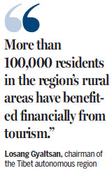 "More than 100,000 residents in the region's rural areas have benefited financially from tourism," Losang Gyaltsan said.