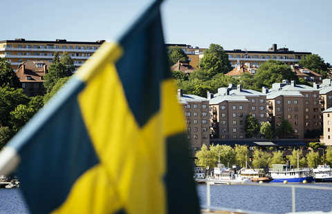 A student poses with the flag of law school of Tsinghua University in Beijing on Aug 23, 2017. About 3,800 students from around the world came to the university for registration on Wednesday. [Photo/VCG]