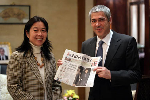 Li Xing (R)?has an interview with Tony Blair on March?28, 2011.?[Photo provided to chinadaily.com.cn]?
