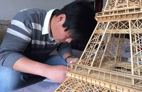 Workers restore a sculpture of Qianshou Guanyin (bodhisattva with a thousand hands) on Mount Baoding in Dazu district in the municipality of Chongqing, Southwest China, March 31, 2015. The sculpture with gold foil, carved in the cave with 7.7 meters high and 12.5 meters wide, could date back to Southern Song Dynasty (1127 to 1279). The restoration work has entered the final phase and is supposed to be finished in June this year, after which the sculpture will be reopened to public. [Photo/Xinhua]