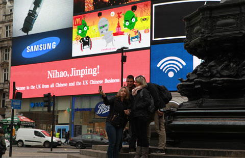 Actors Huang Xiaoming (left) and Zhao Wei attend a celebration in Beijing Film Academy in Beijing, China, Oct. 17, 2015. Beijing Film Academy on Saturday held an celebration to mark the 65th anniversary of the founding of the academy. [Photo/Xinhua] |