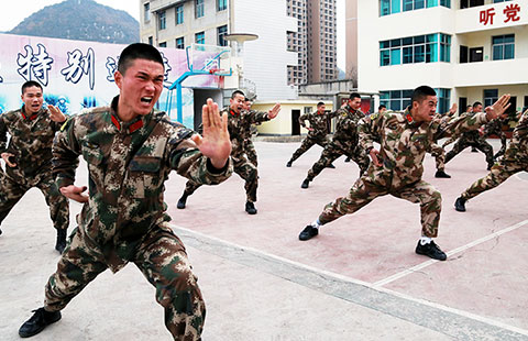 An exhibitor arranges dishes made by stones during the second China (Beijing) International Buddhist Items & Supplies Expo in Beijing,capital of China, Dec 18, 2015. The 4-day China (Beijing) International Buddhist Items & Supplies Expo opened here onFriday.[Photo/Xinhua]