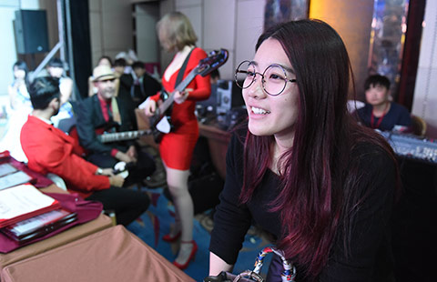 An artist with China's Song and Dance Company of Jilin prepares prior to the first presentation in the Colsubsidio Roberto Arias Perez Theater, in Bogota, Colombia, on Jan. 22, 2016. China's Song and Dance Company of Jilin, which visited Colombia for the first time, will carry out two performances in Bogota. [Xinhua/Jhon Paz]