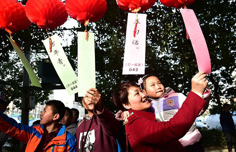 A group of youngsters participate in a "spring" themed calligraphy competition in Dalian, Liaoning province on Feb 20, 2016. The competitors are required to choose one of four different styles of calligraphy, including regular script, clerical script, seal script or running script. Then, they are tasked with printing the Chinese character for "spring" or verses with a theme that is appropriate for the season. [Photo/CFP]