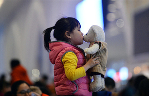 Chen Fengxian uses high-powered magnifying glass to gaze at his miniature engraving of a small rooster, Jan 11, 2017. [Photo/Xinhua] |