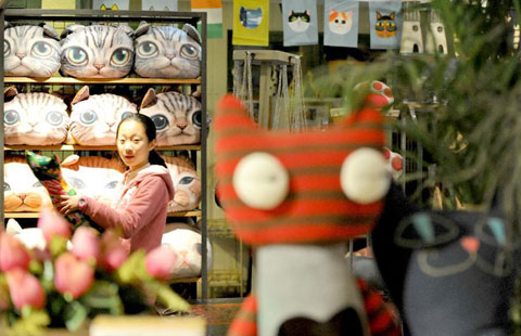 A visitor takes photos of a painting during the exhibition of Chinese artist Chang Shana's study and application of Dunhuang art design in Shenzhen, South China's Guangdong province, Feb. 13, 2015. A total of 300 pieces of artworks were displayed on the exhibition that kicked off here on Thursday. [Photo/Xinhua]