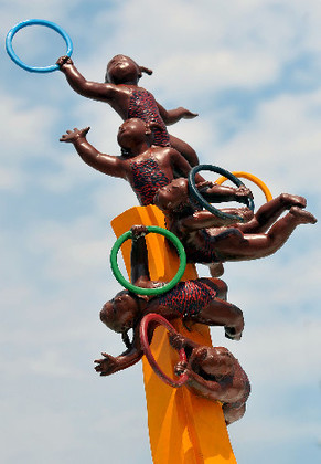 青島奧林匹克主題公園內(nèi)的雕塑作品《同一個(gè)夢(mèng)》(8月4日攝)。