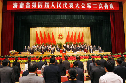 | 16日,歷時(shí)4天半的海南省第四屆人民代表大會(huì)第二次會(huì)議圓滿完成各項(xiàng)議程,于省人大會(huì)堂勝利閉幕。 (黃一鳴 攝) |