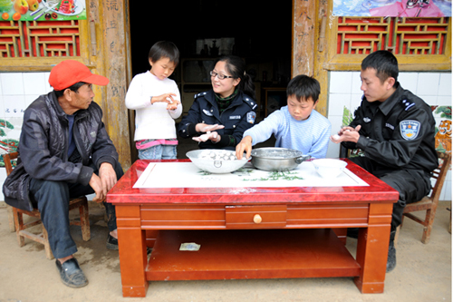 三年前,派出所民警在金雞村開展調查訪問時,得知由于連年干旱,莊家欠收,村民楊建橋家的兒子和女兒無奈之下前往廣州打工,把兩個孩子留給老楊照顧,為了節(jié)約開支幾乎不怎么回家。楊建橋患風濕病多年,又要忙地里的活計,又要照顧年幼的小孩,生活十分貧困。平日里,派出所都會派一兩個民警隔三岔五來到老楊家中劈柴挑水、問寒問暖。