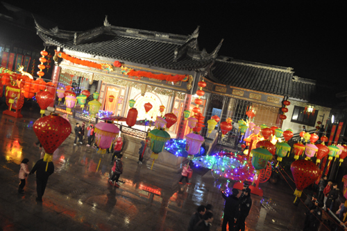 俗話說:“除夕的火,元宵的燈”。夜幕里的周莊美麗如畫,各種花燈、街燈、提燈等把周莊照得比白天更加柔美。古戲臺從門口到天井,從舞臺到觀演區(qū),繽紛多彩的各式花燈,宛若夢中仙境,展開了古鎮(zhèn)的無限遐想;沿河沿街掛著的大紅燈籠,猶如一串串靚紅色的果實,浸潤在“小橋、流水、人家”之間。