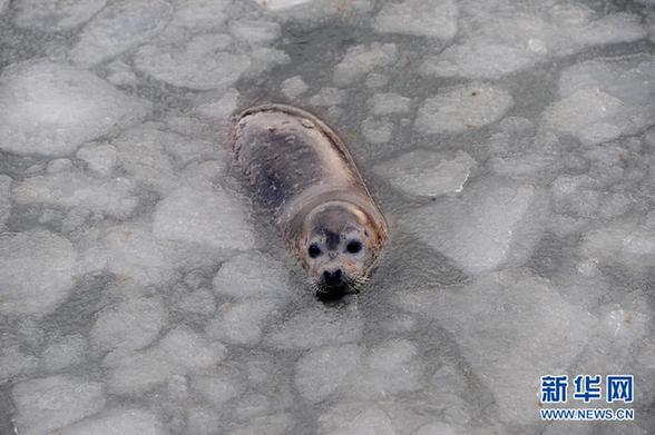 受近日持續(xù)低溫天氣影響,煙臺海豹灣出現(xiàn)大面積結冰現(xiàn)象,景區(qū)工作人員實施人工破冰,并為斑海豹加送營養(yǎng)餐,助其正常生活。當日6時,山東省繼續(xù)發(fā)布寒潮藍色預警。新華社發(fā)(初陽攝)