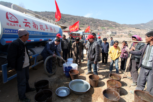 “謝謝您們幫我把兩個水窖灌滿水,讓我家吃水沒問題了,按時移栽烤煙也有希望了……”2月18日下午,當云南省昭通市巧家縣崇溪鄉(xiāng)花山村石旮旯村小組的張正云看著黨員抗旱先鋒隊員們從10公里外的龍?zhí)扼渌袋c來回運水將自家的兩個水窖全部灌滿時,拉著崇溪鄉(xiāng)鄉(xiāng)長、黨員抗旱先鋒隊隊長尹貴卿的手激動地說。隨著旱情加劇,崇溪鄉(xiāng)組建了由一支40余人的黨員抗旱先鋒隊,分別深入到旱情較重的村組,組織和參與運水、送水,增加水窖蓄水量,在確保人畜飲水的基礎(chǔ)上努力滿足春耕生產(chǎn)用水需求。