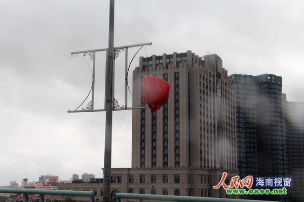 "蝴蝶"發(fā)威 ??谟瓏鴳c紅燈籠在風雨中飄零