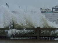 強(qiáng)臺(tái)風(fēng)“海燕”影響海口 岸邊浪潮洶涌