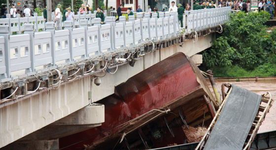 廣西東興抽沙船沖撞北侖河中越友誼大橋
